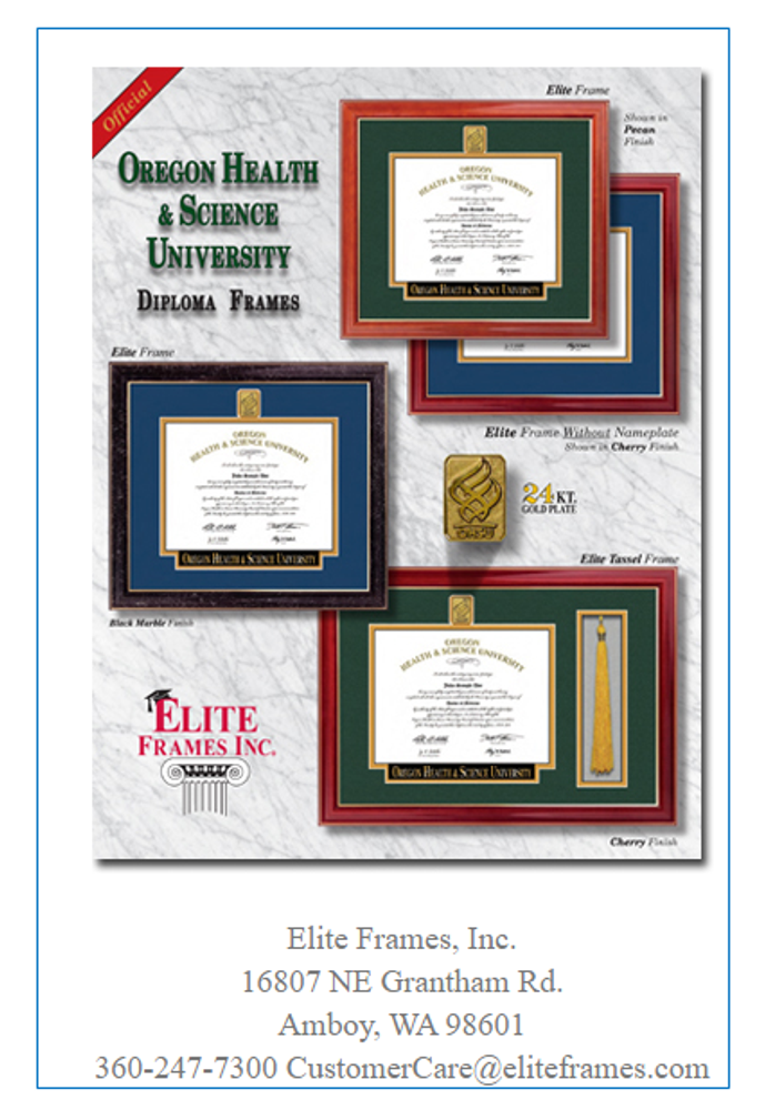Custom made frames specifically designed by you to fit your diploma/document. Your remarkable achievement deserves a remarkable frame. Visit Elite Frames at https://www.eliteframes.com/OHSU